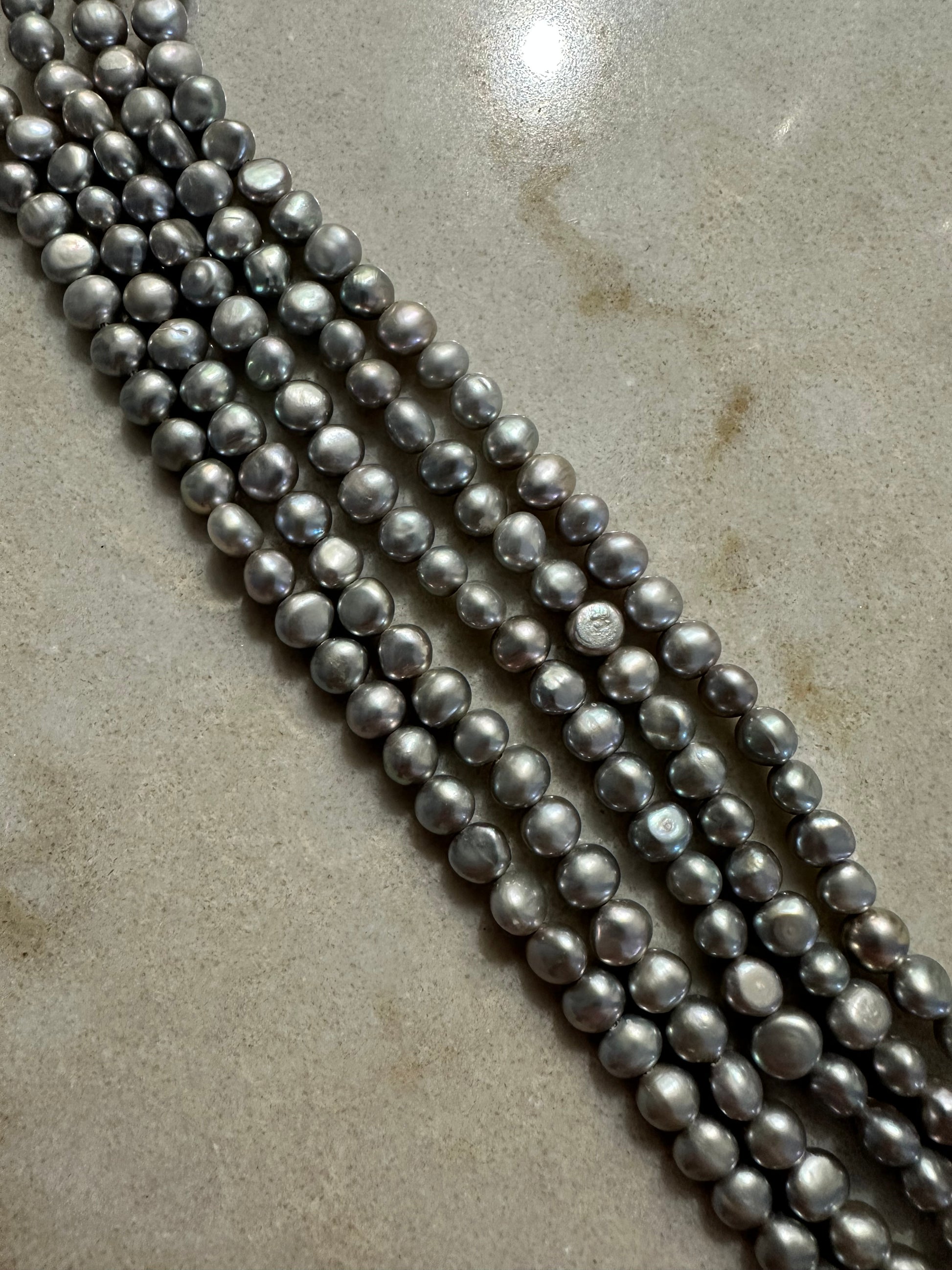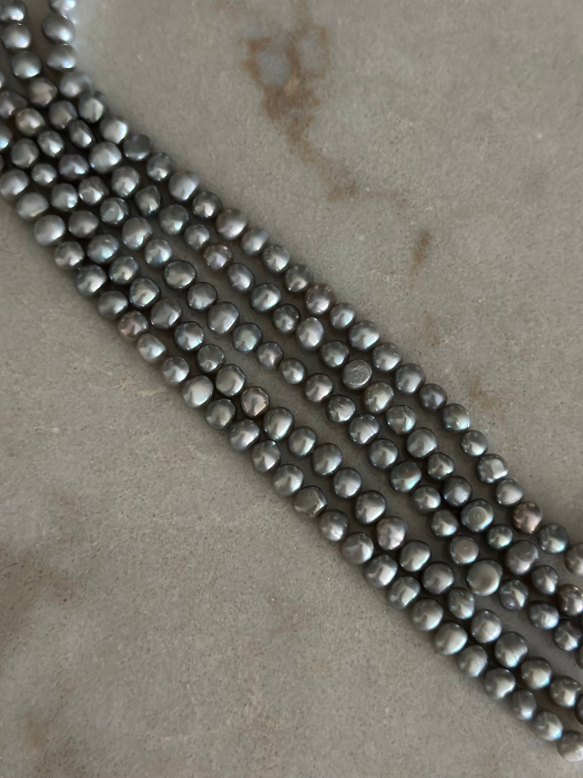 Colier la baza gatului realizat manual din perle de cultura gri cu forme neregulate de dimensiune 5/6 mm.
