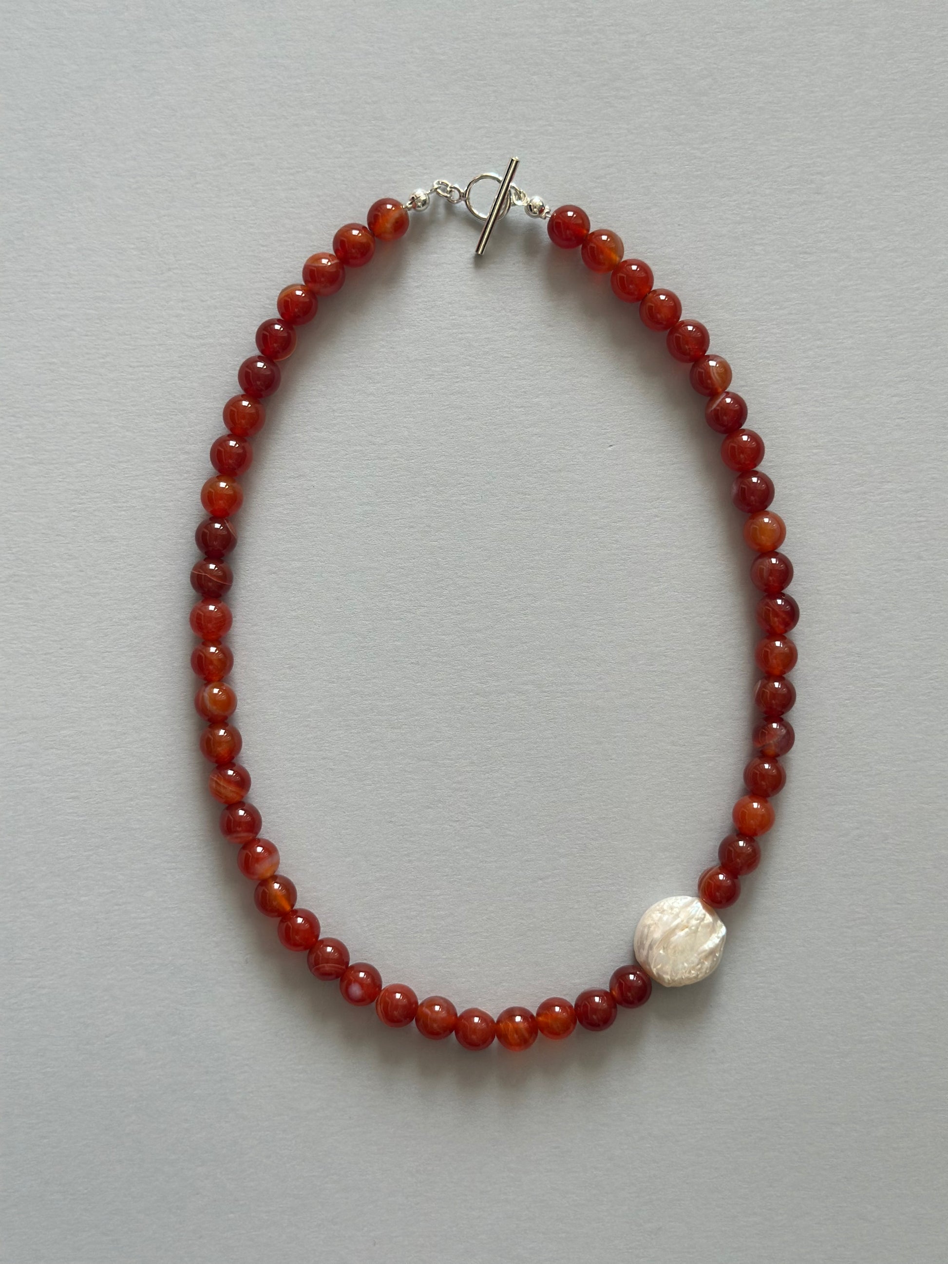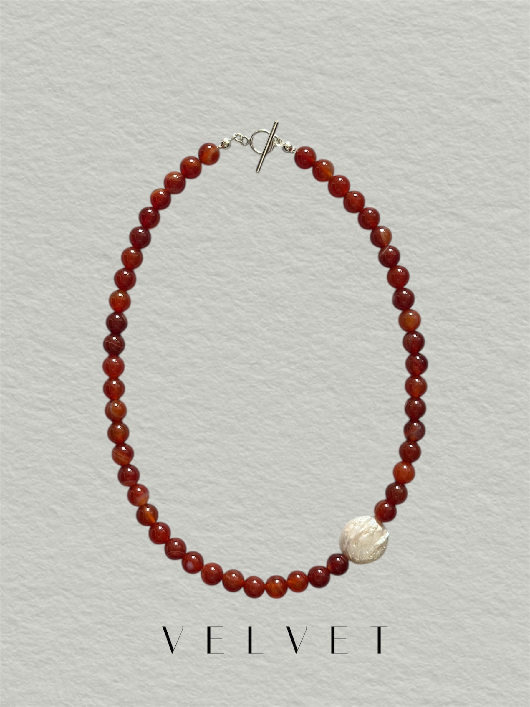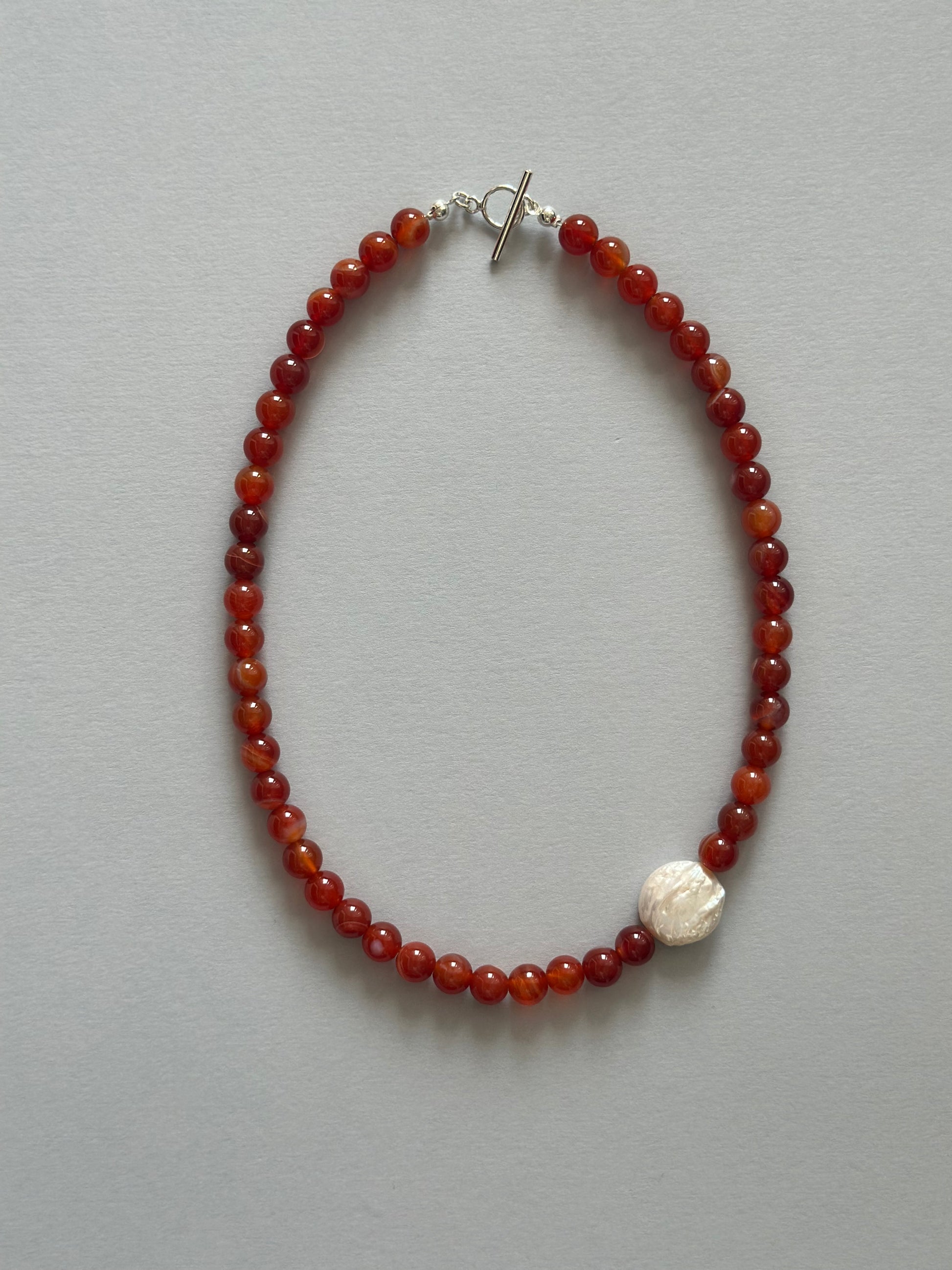 Colier realizat manual din pietre de Agat si charm lateral perla naturala de cultura baroc.