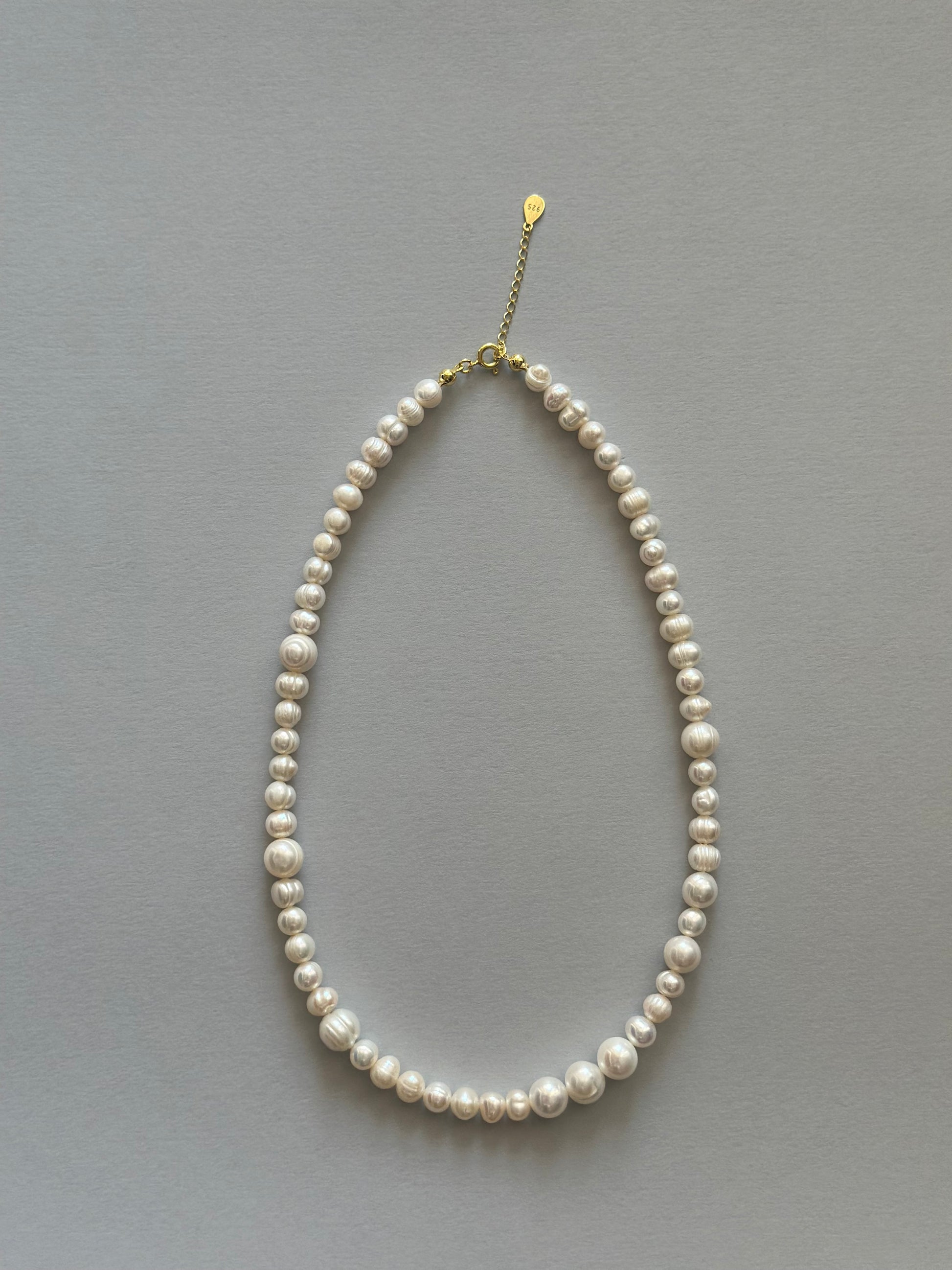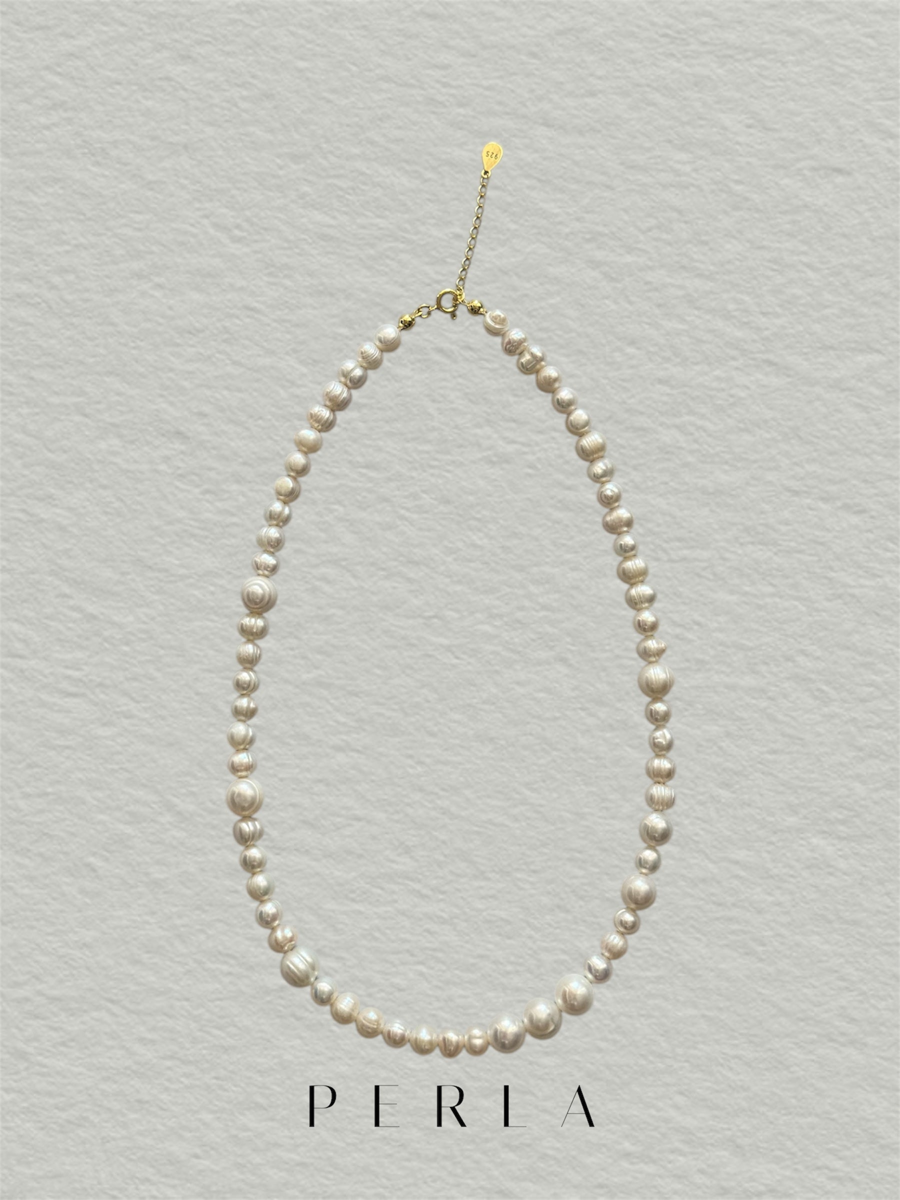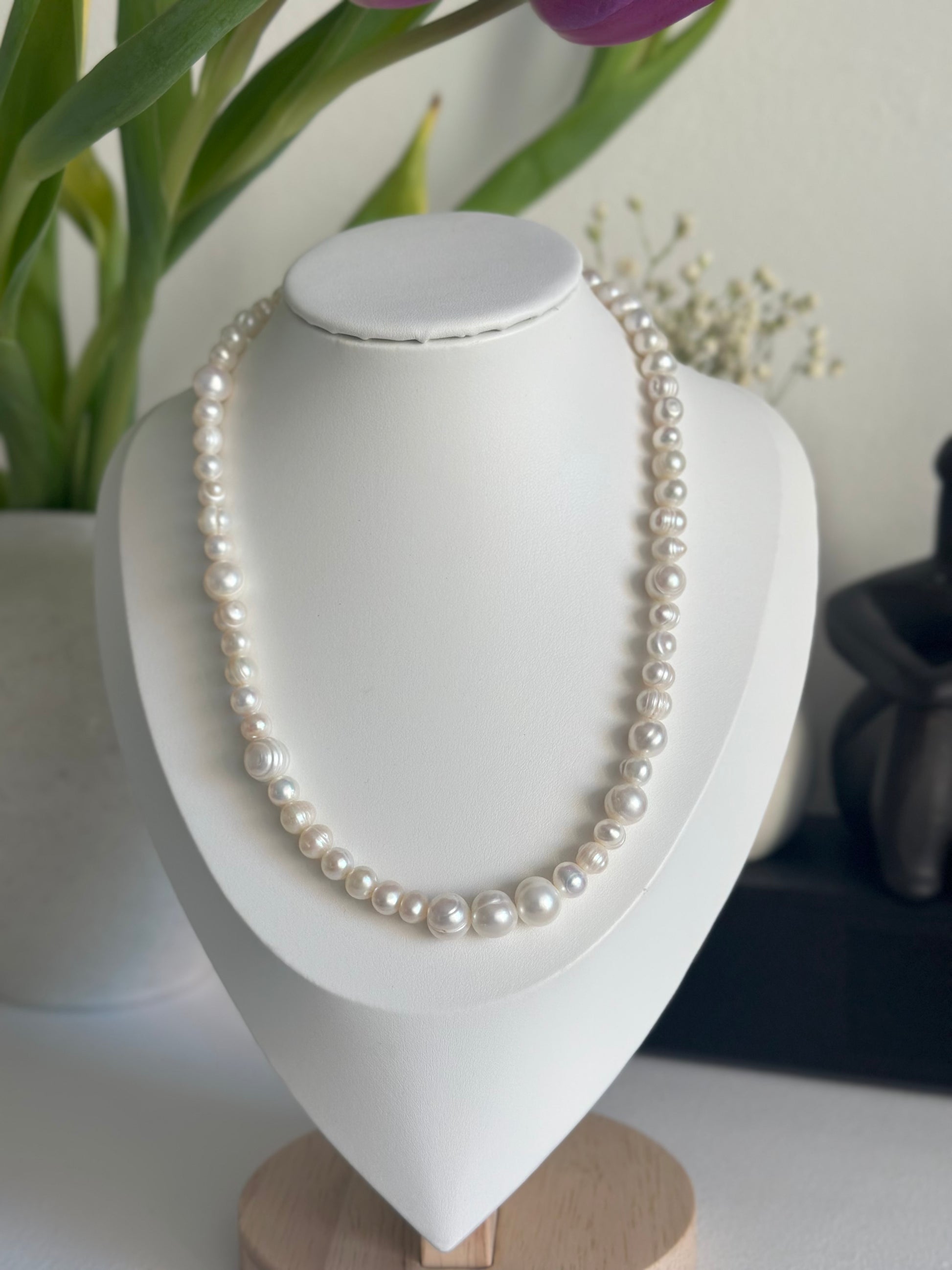 Colier realizat manual din Perle naturale de cultura de diferite dimensiuni.
