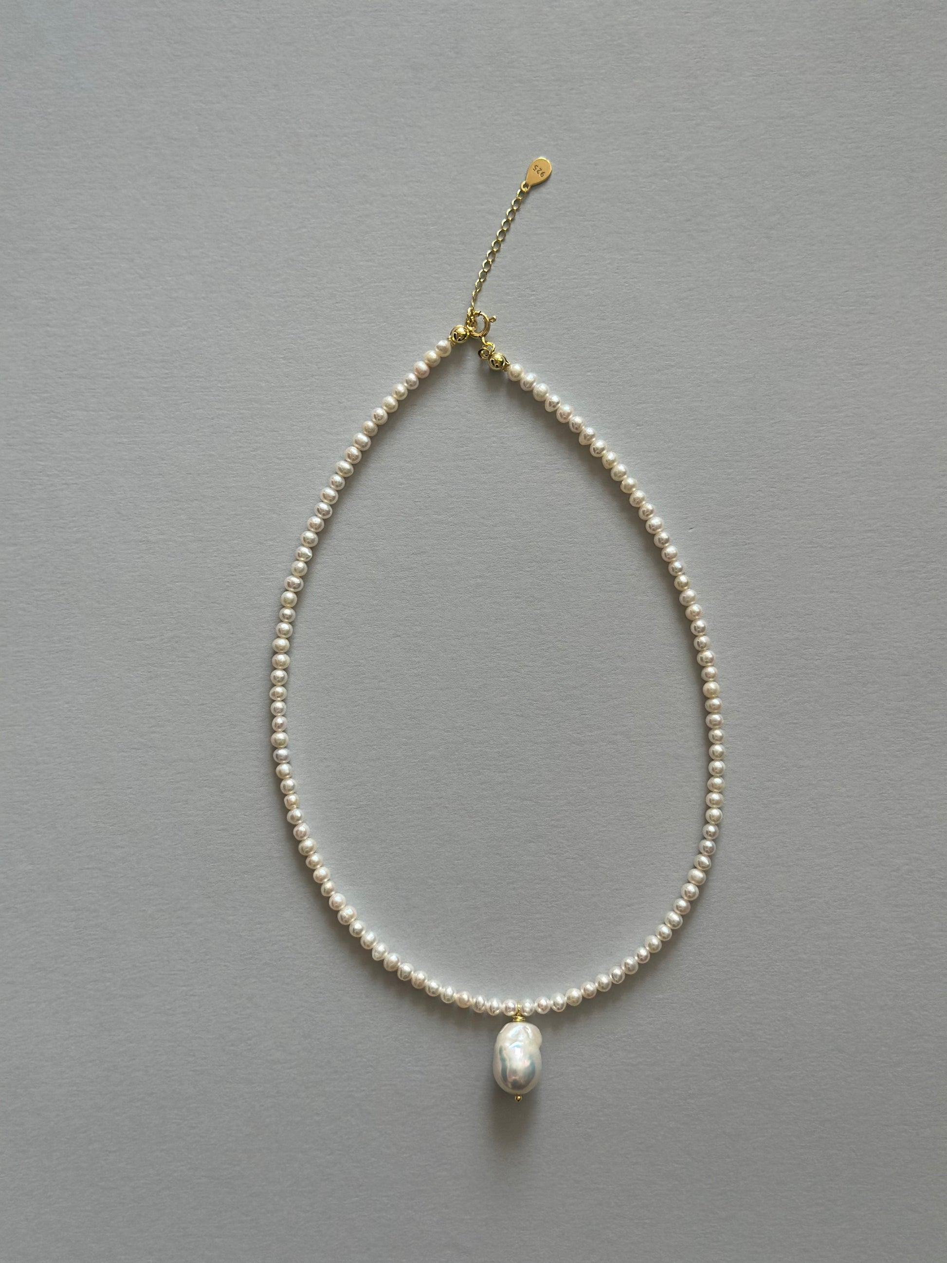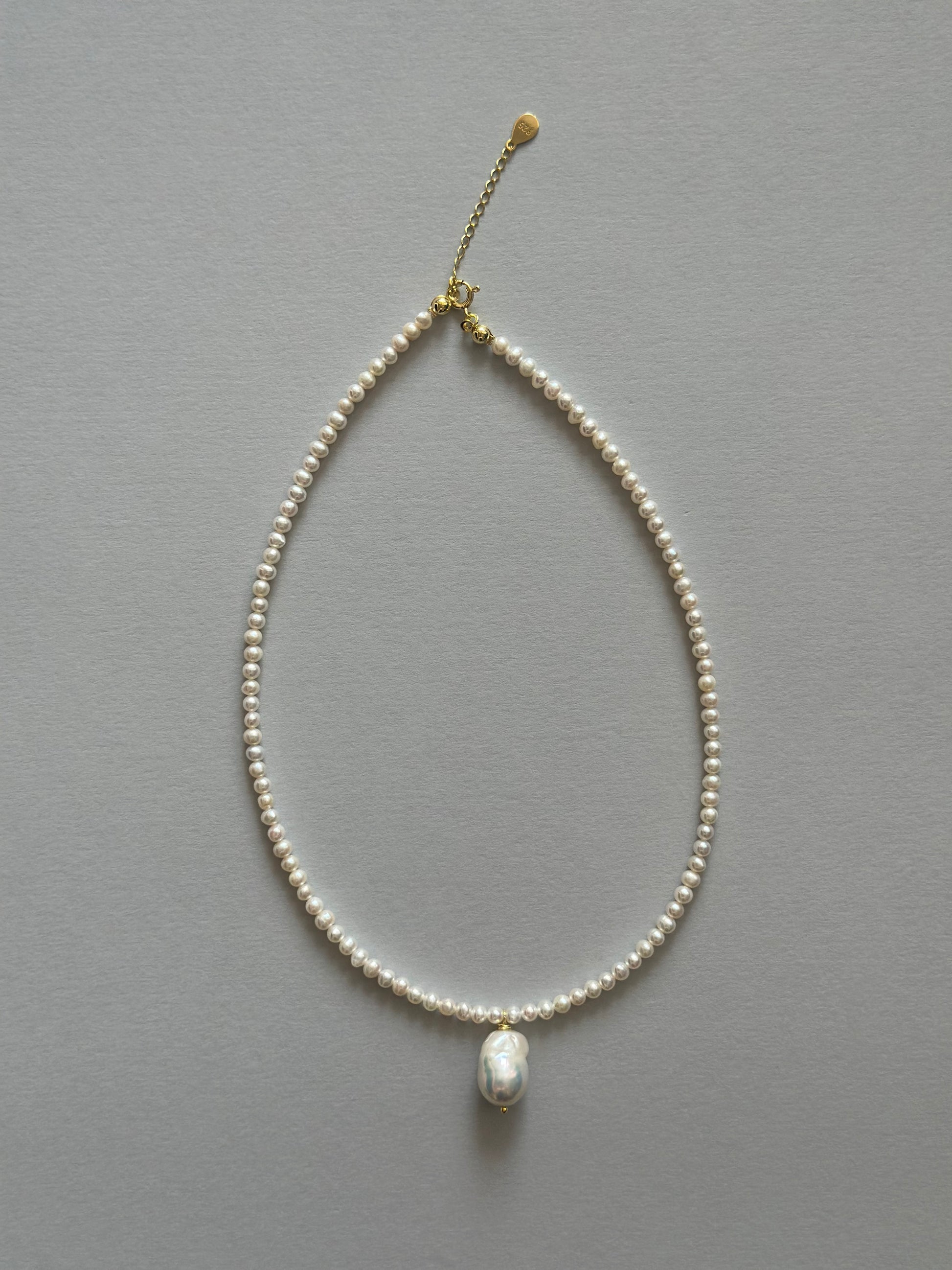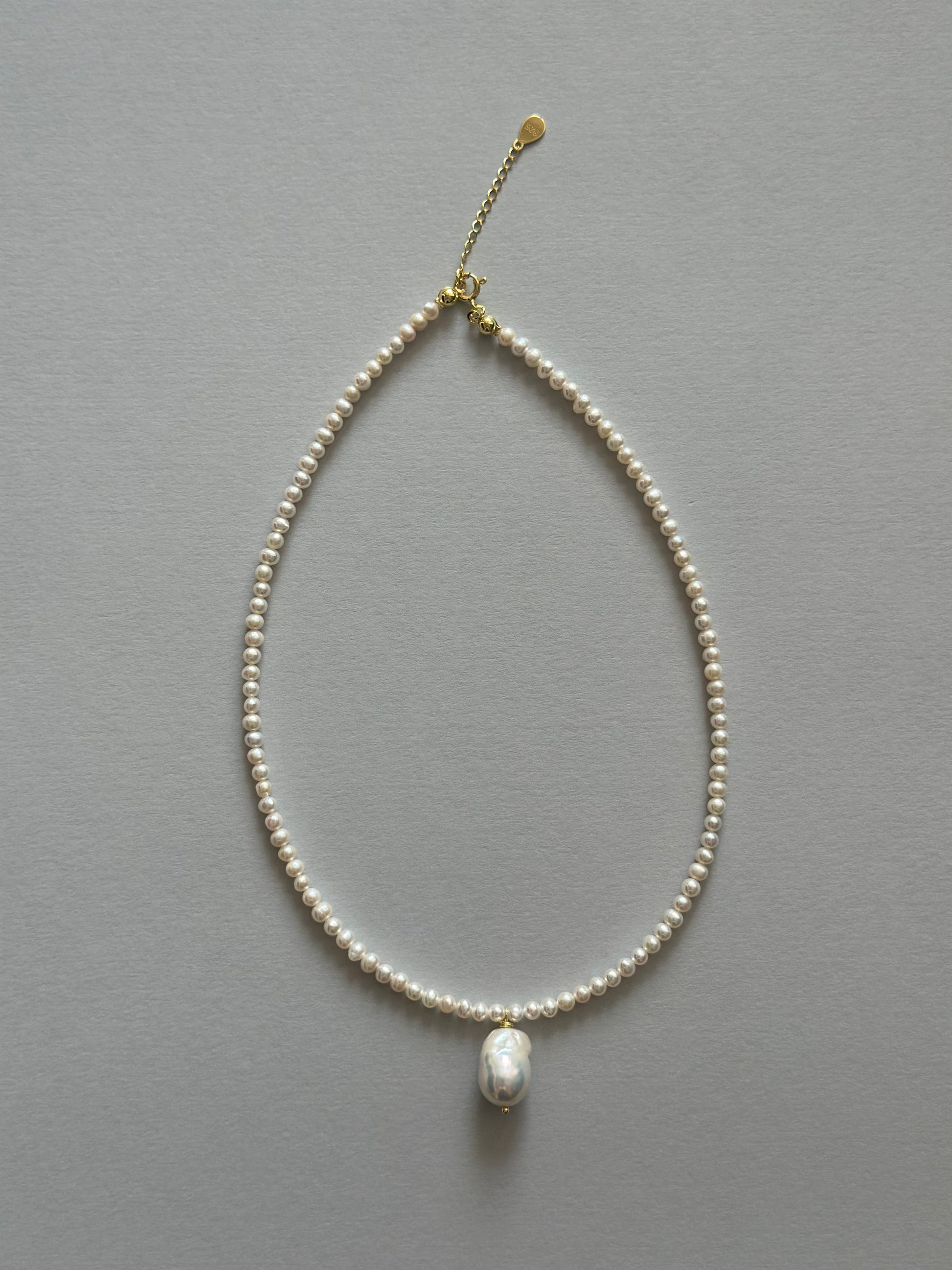 Colier baza gatului realizat manual la din perle narurale de cultura rotunjite si delicate 3-4 mm si charm Perla baroc.